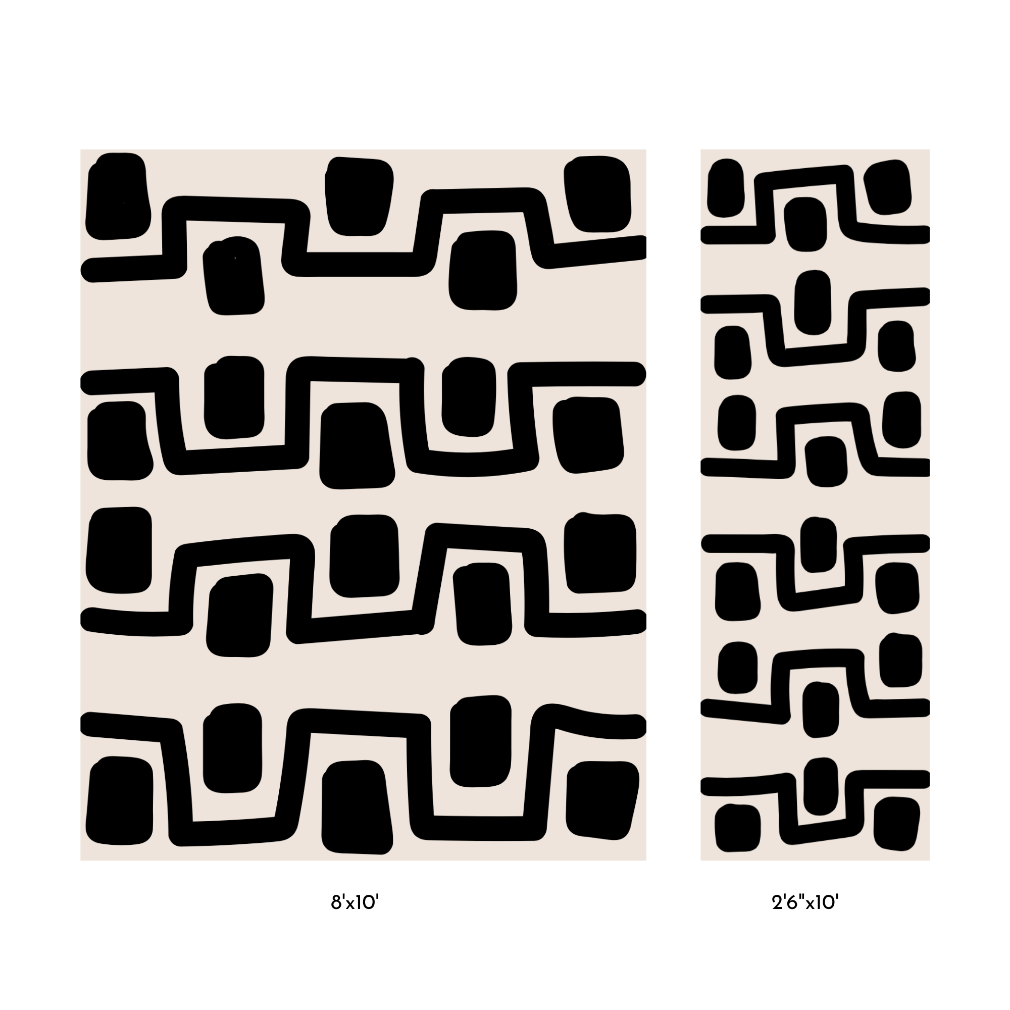 The Kuba rug draws inspiration from traditional African Kuba cloth, known for its striking geometric patterns and rhythmic repetition. Hand-tufted in a timeless palette of ivory and black, this design celebrates the artistry of pattern and texture through bold, graphic form.